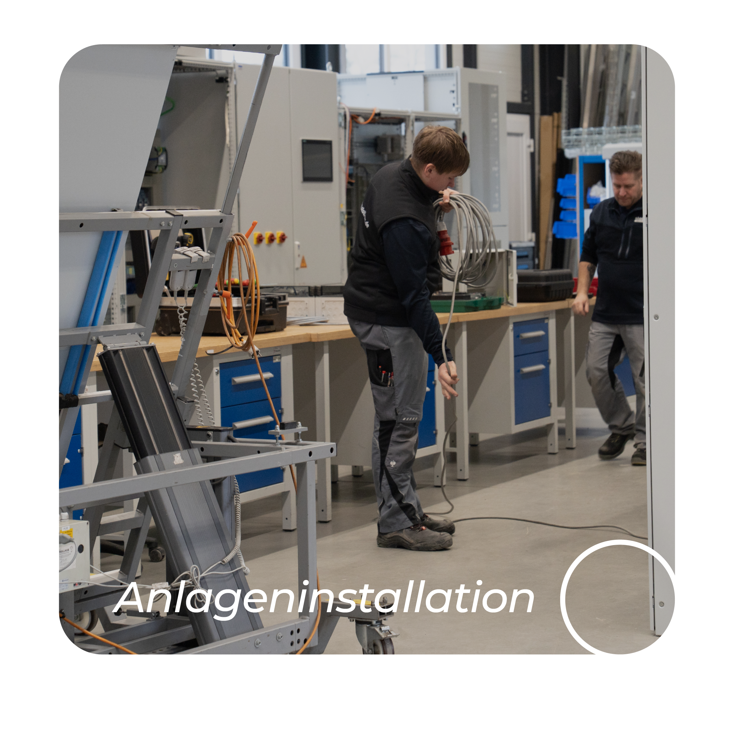 In Verbindung mit unserer Elektrokonstruktion übernehmen wir die Anlageninstallation und elektrische Montagedirekt beim Kunden – oder bei dessen Endkunden – durch qualifizierte Elektrofachkräfte. Vom einfachen Handarbeitsplatz über Rundtaktautomaten bis hin zu komplexen Montage- und Transferanlagen installieren und verdrahten wir automatisierte Sondermaschinen, Mess- und Prüfeinrichtungen sowie komplette Produktionslinien. Sie suchen einen Partner, der gesamte Maschinen und Anlagen installieren kann?