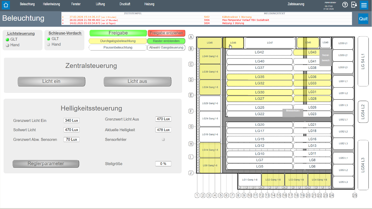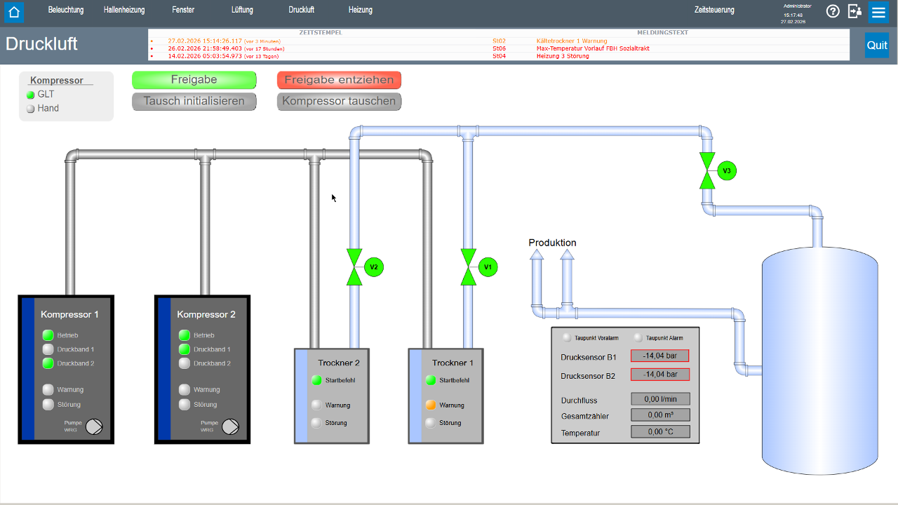 Die Anlage bietet eine wirtschaftliche, bedienerfreundliche und zukunftssichere Lösung – ideal für industrielle Produktionsbetriebe oder vergleichbare Gebäude, in denen zeitgesteuerte Betriebsabläufe und flexible Nutzungsprofile entscheidend sind.