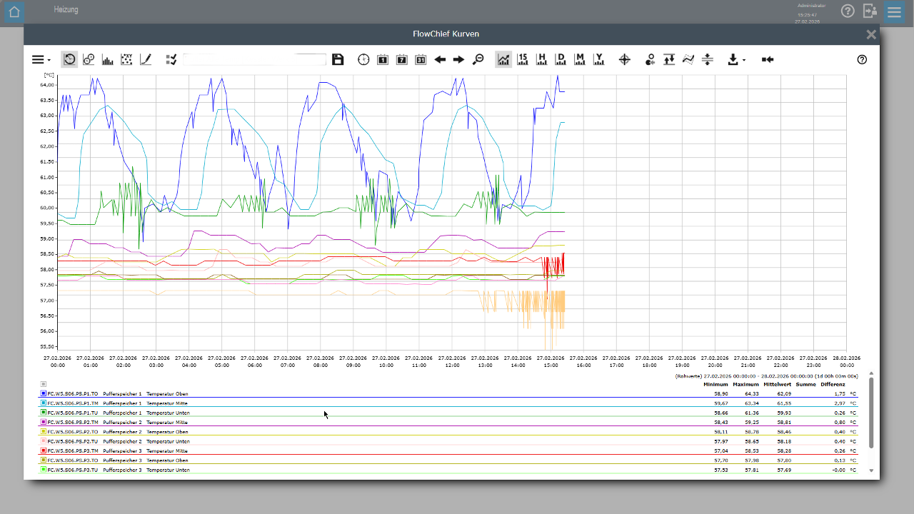 Darstellung von Messkurven, z. B. für Temperatur- und Energieverläufe